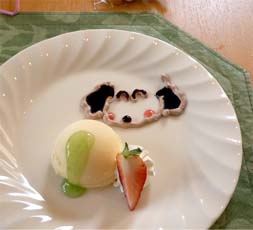 チカちゃん4歳になりました~~ おめでと~~ お祝いにみんなで「レストラワン」にランチです メグとチカ あれ?? サーちんがいない? パパに膝の上で 早く、おやつちょうだいとおねだり中でした 今日のランチは メインのお肉